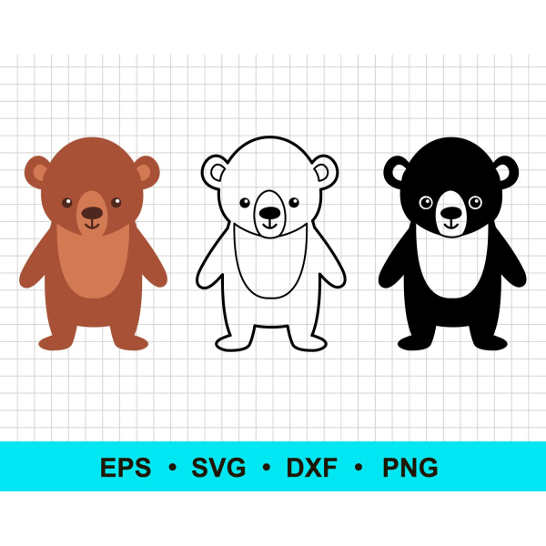 Bear svg, png, dxf, eps. Cute baby bear silhouette, outline clip art. Bear cricut cut files. Commercial use, digital vector clipart.